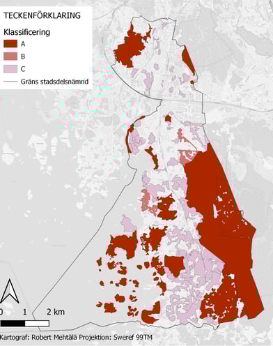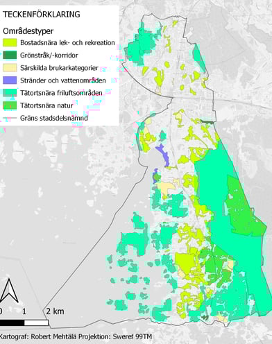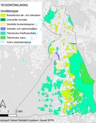 Kartläggning och klassificering av friluftsområden i västra Göteborg.
