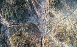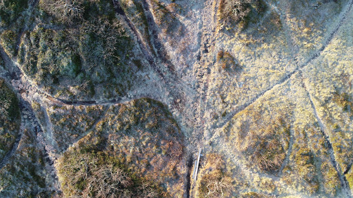 Drönarfoto som visar utbredningen av stigar. Foto: Mats Olvmo.